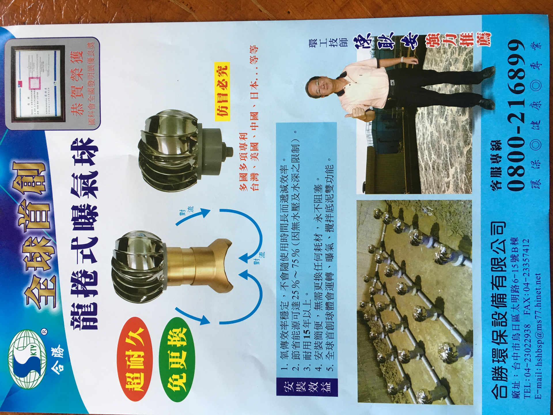 大本瑩有限公司於2016年最新創作污水處理廠專用曝氣球曝氣盤!